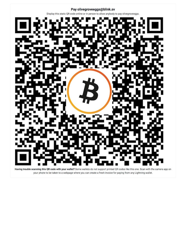 When you are operational, use your phone wallet to scan a QR code to make a payment. Like the one here for Olive Grove Eggs.