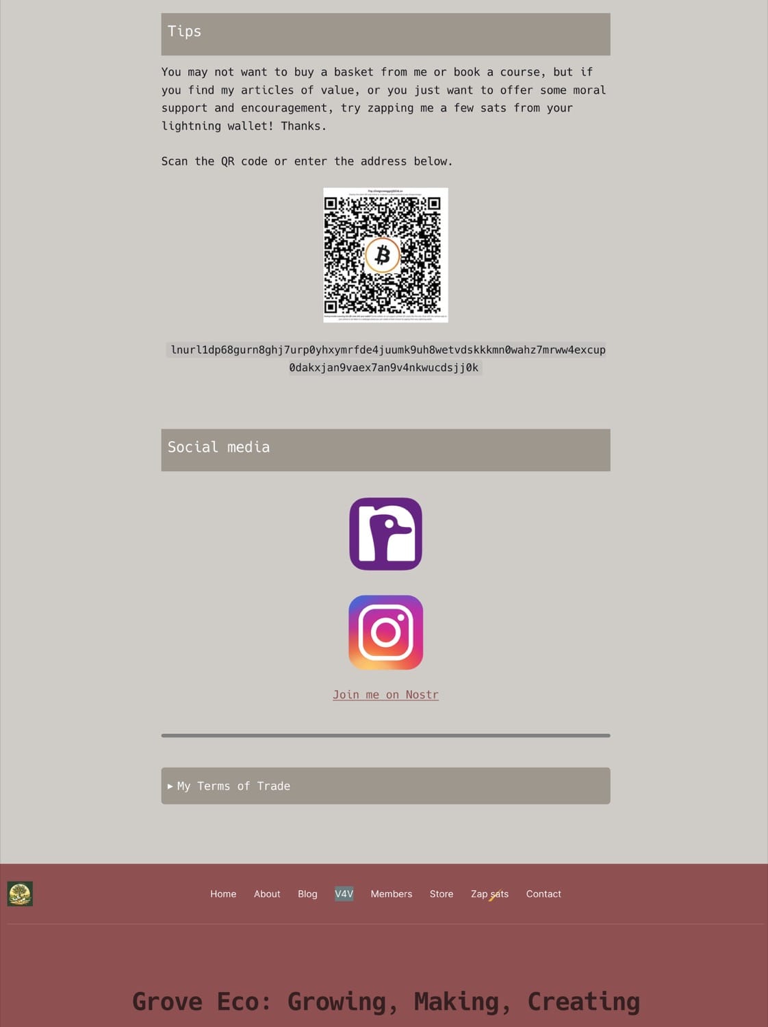 Grove Eco is determined to move away from the internet platforms and technologies that are now causing us more problems than they solve. Therefore we strongly encourage all members to at least set up a Bitcoin Lightning payment wallet and check it out.